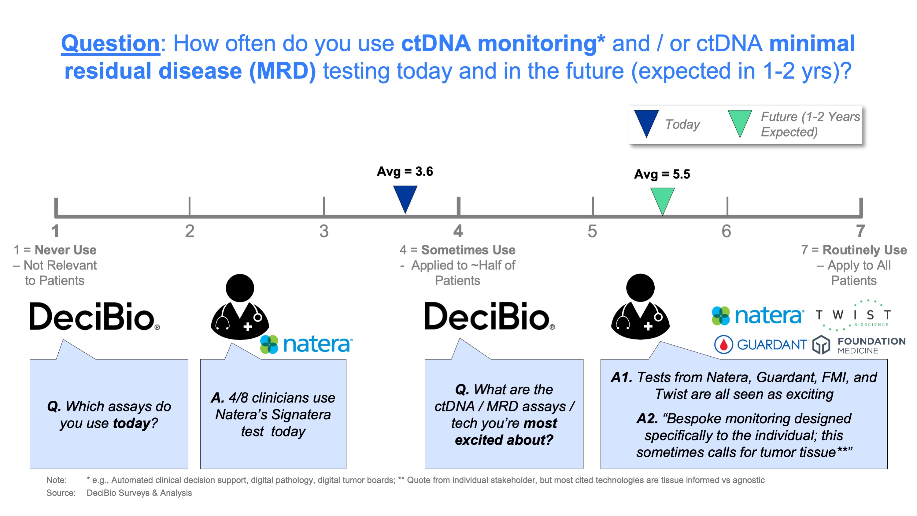 2. Liquid biopsy in particular (especially ctDNA monitoring / MRD) is a key technology oncologists are excited to adopt; >50% of cancer patients may benefit from these technologies in the next 1-2 years