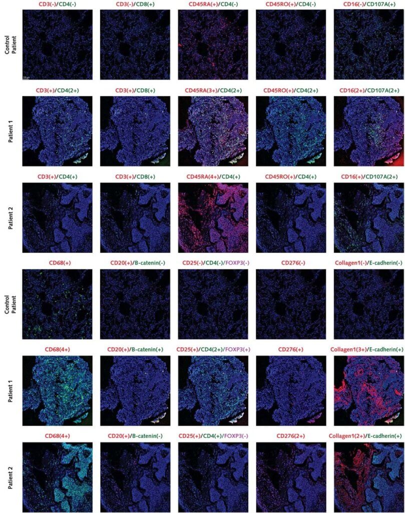 Imaging completed by the Dexi Chen Lab at the Beijing Institute of Hepatology looking into the inflammatory response to respiratory distress syndrome in COVD patients. Dexi Chen, PhD, MD, has stated “Imaging Mass Cytometry with CyTOF technology is our method of choice for these studies because the limited samples are very valuable.” Figure courtesy of Zhang et al., 2020 (doi.org/10.7326/L20-0227).